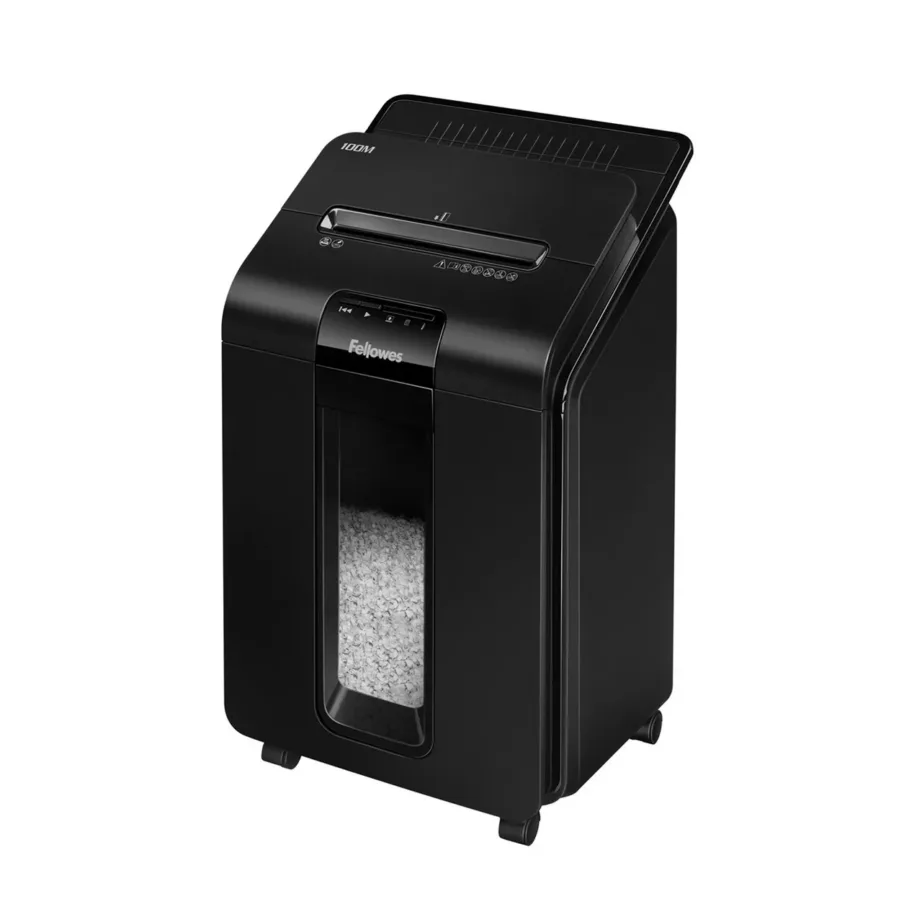 Tasuta tarne Tasuta tarne Fellowes AutoMax 100M 23L must P-4 mikrolõikeline paberihävitaja, 22 cm, 100-lehe automaatne sisestus, A4, krediitkaartide ja klambrite hävitus, mudel 4629201 Dokumendipurustid (paberihundid) 348,87 € Laost otsas Vaata toodet