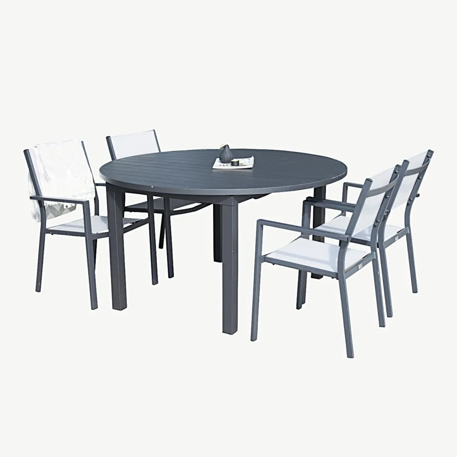 Tasuta tarne Tasuta tarne Ümmargune laiendatav aiakomplekt Marbella, must alumiinium ja hallid virnastatavad toolid, GR164 Aia söögilaua komplektid 1291,99 € Lisa korvi Vaata toodet