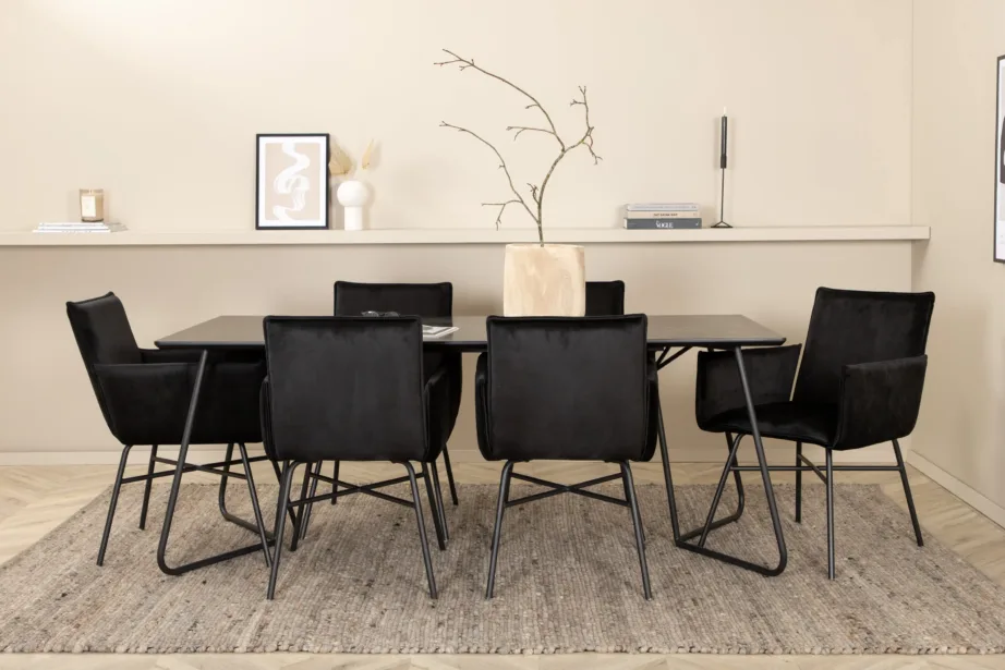 Tasuta tarne Tasuta tarne Petra must söögilaud velvet toolidega (6 tk), GR22100 Kandilised söögilauakomplektid 1299,99 € Laost otsas Vaata toodet