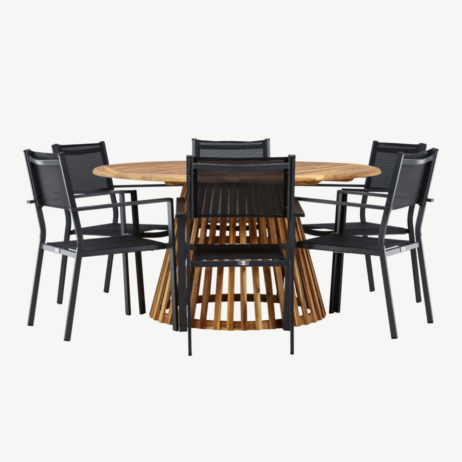 -27% Tasuta tarne -27% Tasuta tarne Ümmargune aiamööbli komplekt Tucumán (akaatsiapuit, ø150 cm) kuue musta alumiiniumtooli ja köispunutisega, GR24317 Aia söögilaua komplektid 1887,99 € Algne hind oli: 1887,99 €.1378,99 €Current price is: 1378,99 €. Lisa korvi Vaata toodet