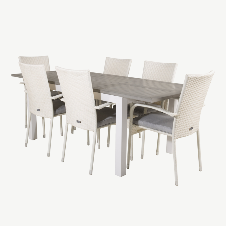 -27% Tasuta tarne -27% Tasuta tarne Pikendatav aiamööbli söögikomplekt Albany (valge alumiinium, hall aintwood, 6 tooli), GR18999 Aia söögilaua komplektid 1626,99 € Algne hind oli: 1626,99 €.1187,99 €Current price is: 1187,99 €. Laost otsas Vaata toodet