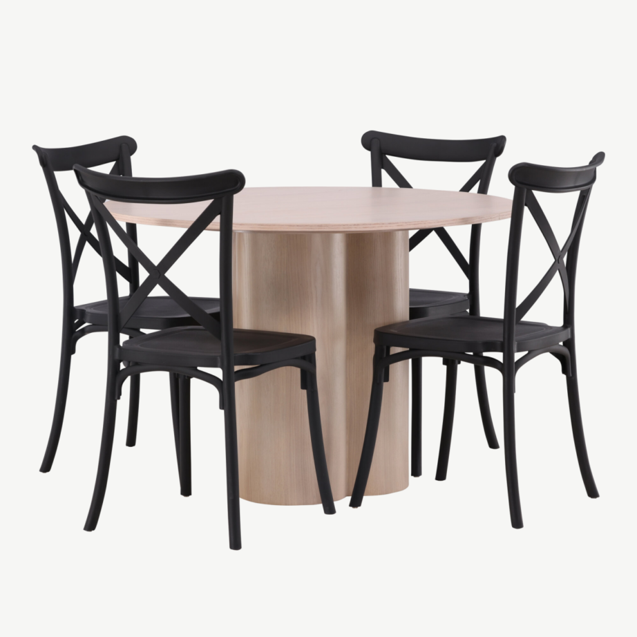 Tasuta tarne Tasuta tarne Ümmargune söögilaud Olivia mokkat tooni ja Crosett mustad toolid (4 tk), GR23079 Ümmargused söögilauakomplektid 1016,99 € Lisa korvi Vaata toodet