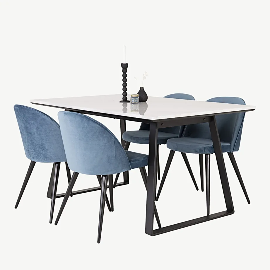 -15% Tasuta tarne -15% Tasuta tarne Valge marmorplaadiga söögikomplekt Estelle siniste samettoolidega (4 tk), GR19827 Kandilised söögilauakomplektid 1143,99 € Algne hind oli: 1143,99 €.972,99 €Current price is: 972,99 €. Laost otsas Vaata toodet