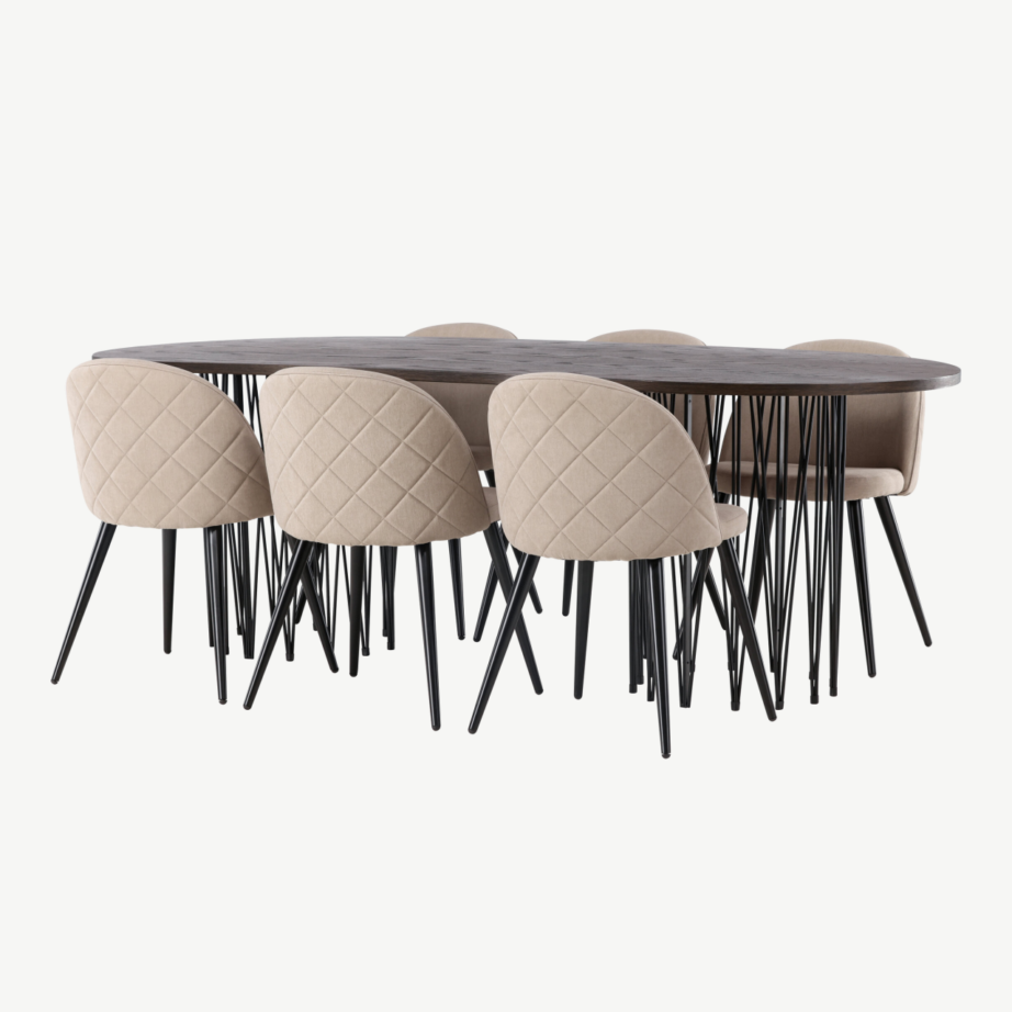 Tasuta tarne Tasuta tarne Ovaalne söögilauakomplekt Stone mokka vineeriga, mustad metalljalad ja beežid Velvet Stitches toolid, GR22818 Kandilised söögilauakomplektid 1356,99 € Lisa korvi Vaata toodet
