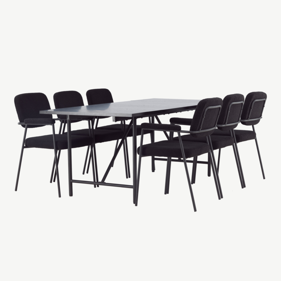 -18% Tasuta tarne -18% Tasuta tarne Skandinaavia stiilis söögigrupi komplekt Astrid must (söögilaud 200x90cm ja 6 buklee-kangaga tooli), GR23517 Kandilised söögilauakomplektid 991,99 € Algne hind oli: 991,99 €.813,99 €Current price is: 813,99 €. Laost otsas Vaata toodet