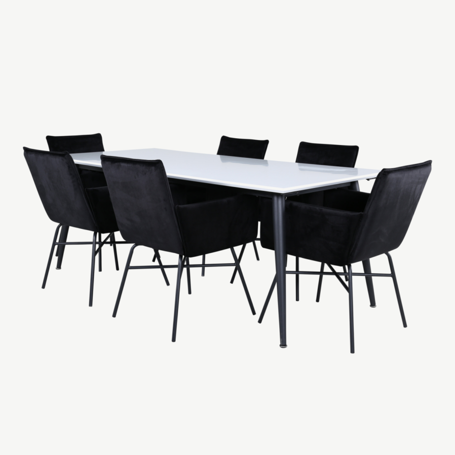 -15% Tasuta tarne -15% Tasuta tarne Pikendatav söögikomplekt Jimmy, valge HPL lauaplaat ja mustad velvetkattega Petra toolid (6 tk), GR22288 Kandilised söögilauakomplektid 1467,99 € Algne hind oli: 1467,99 €.1247,99 €Current price is: 1247,99 €. Lisa korvi Vaata toodet