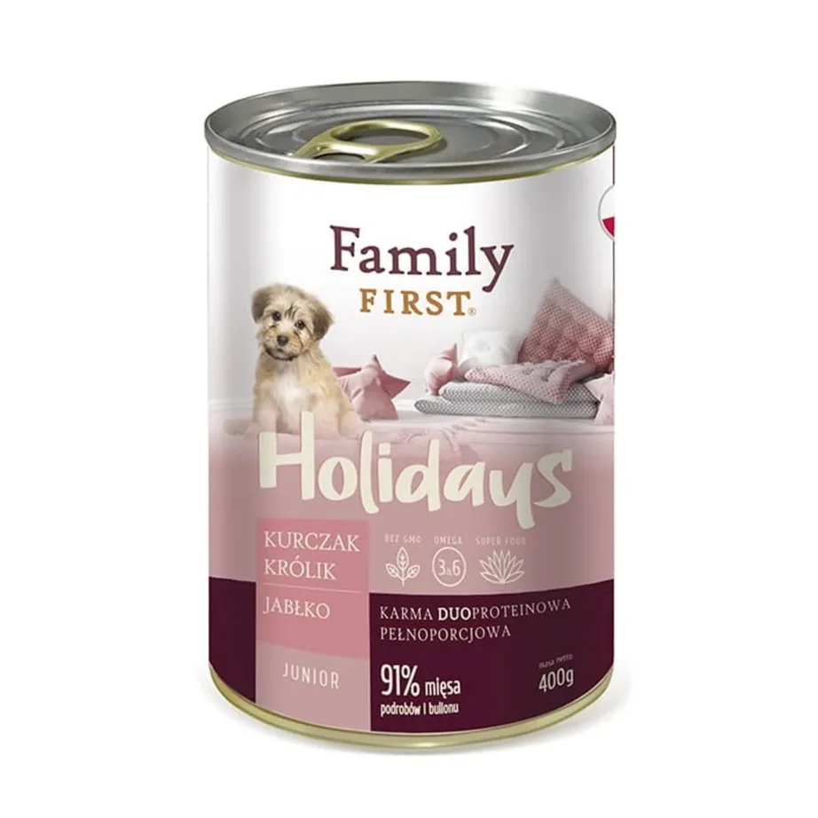 Family FIRST FF-19080 400 g kana, küüliku ja õunaga gluteenivaba märgtoit noortele koertele Märgtoit ja konservid koertele 2,49 € Laost otsas Vaata toodet