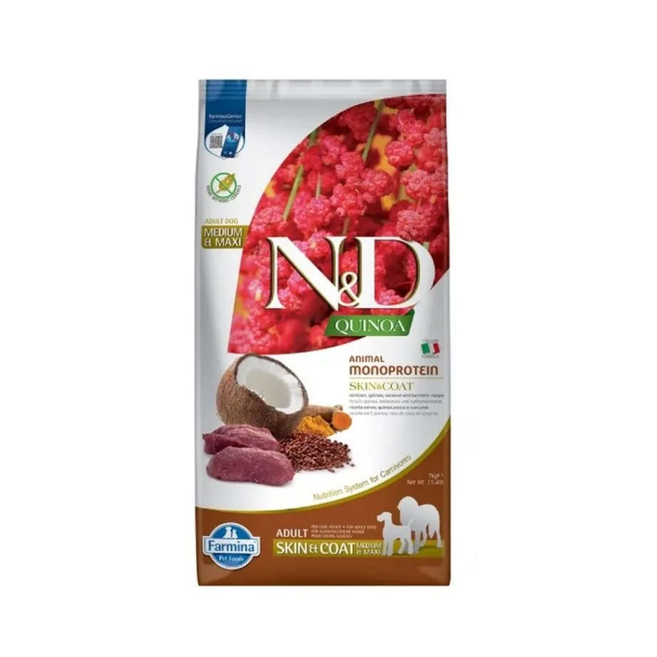 Farmina N&D Quinoa Skin&Coat 7 kg hirveliha ja kookose kuivtoit täiskasvanud keskmistele ja suurtele koertele Kuivtoit koertele 76,28 € Lisa korvi Vaata toodet