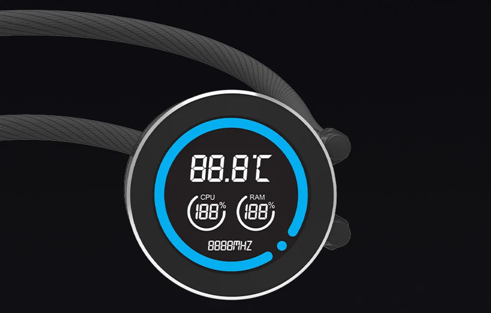 Jahutusploki 2,1-tolline LCD-ekraan (480×480 px, 16,7 miljonit värvi) võimaldab jälgida protsessori ja mälude temperatuure ning pumba tööd reaalajas. Nii saad süsteemi seisukorrast alati ülevaate, ilma lisatarkvarata.