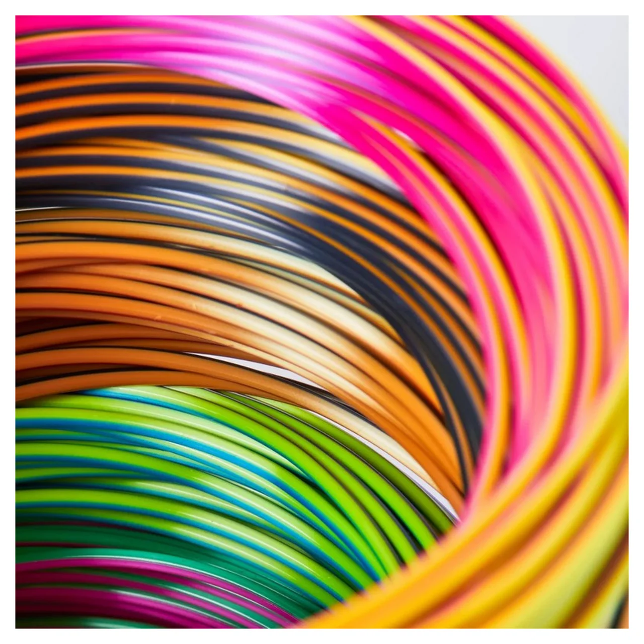 • 6 × 10-meetrist PLA filamentrulli (must, sinine, vask, kuld, roheline, lilla, punane)