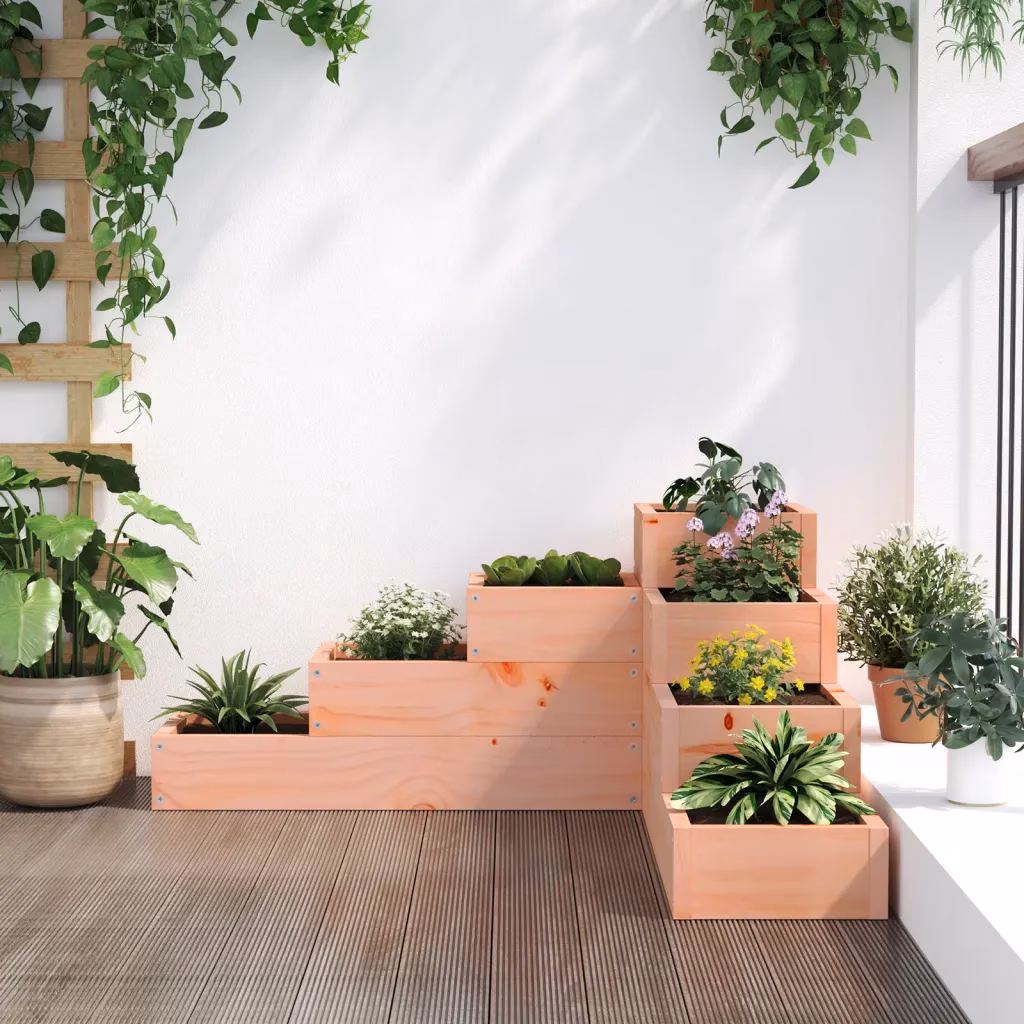 See mitmetasandiline nurgataimekast sobib hästi neile, kes soovivad luua rohelise ala piiratud ruumis, olgu selleks rõdu, terrass või aianurk. Looduslik puidust välimus sulandub eri stiilis väliruumidesse, samas kui nutikas L-kujuline lahendus pakub rohkelt istutusruumi ilma põrandapinda liigselt koormamata.