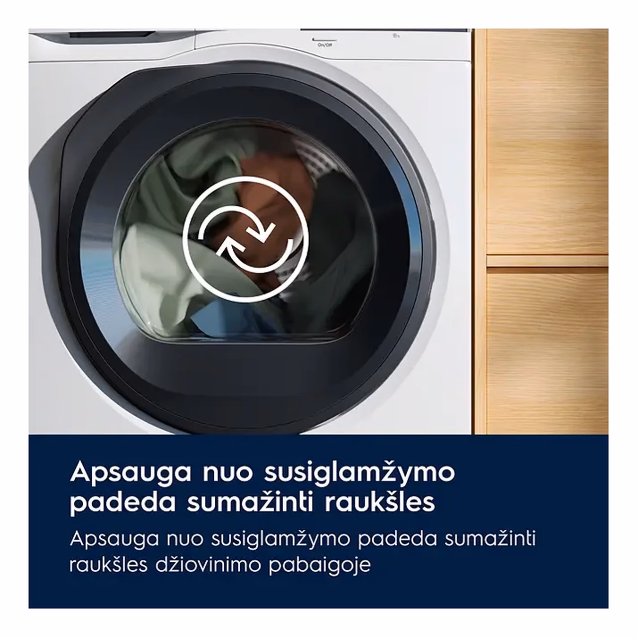• Anticrease kortsumisvastane režiim hoiab trumli liikumises mis aitab riietel vähem kortsuda ja vähendab triikimise vajadust.