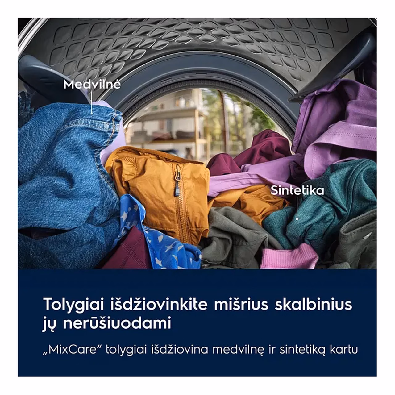 • MixCare programm segapesule lihtsustab pesu korraldamist sest puuvillased ja sünteetilised rõivad saab turvaliselt üheskoos kuivatada.