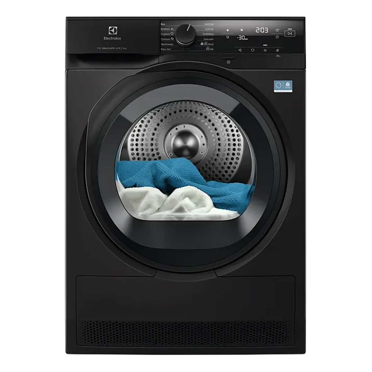 - Hygiene kuivatusrežiim kasutab kõrgemat temperatuuri, et tootja andmetel aidata vähendada kuni 99,9 protsenti teatud bakteritest ja viirustest, mis on kasulik voodipesu ja rätikute puhul.
