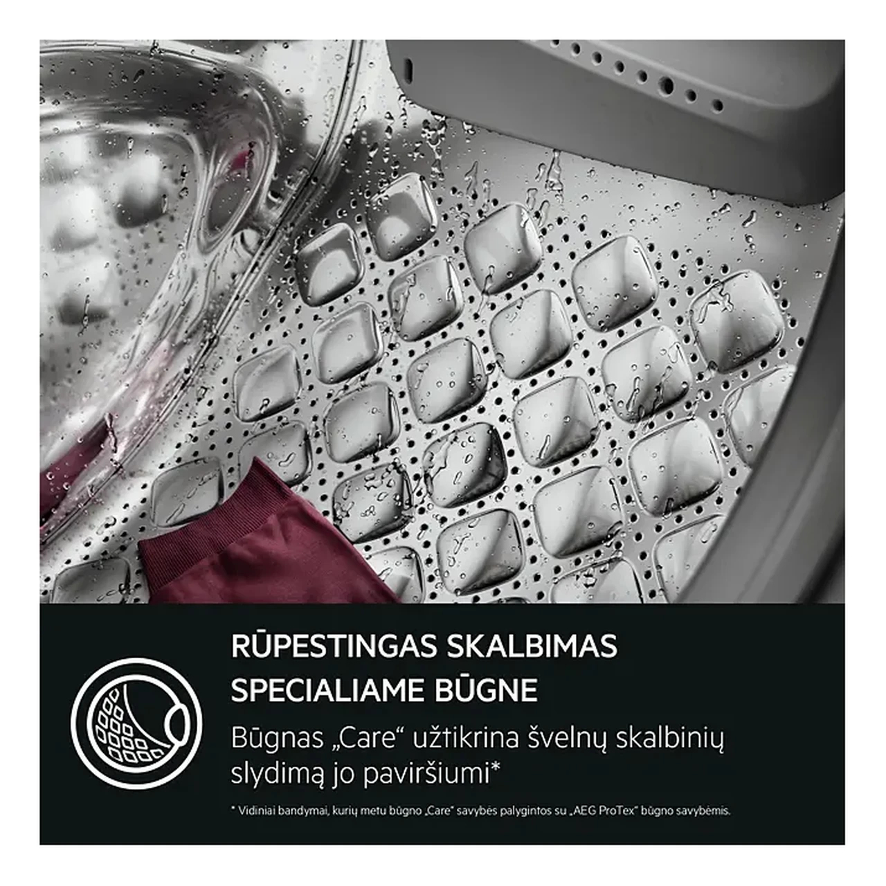 AEG 9000 seeria AbsoluteCare pesumasin kasutab SoftWater tehnoloogiat mille abil filtreeritakse pesuveest välja teatud mineraalid. Tootja sisetestide põhjal aitab selline vee ettevalmistus vähendada värvide pleekimist mitmete pesukordade jooksul ning piirata puuvillaste kangaste kokkutõmbumist võrreldes tavalise kareda veega. Nii püsivad riided kauem oma algse välimuse ja istuvusega ning neid saab kindlamalt pesta ka madalamal temperatuuril.