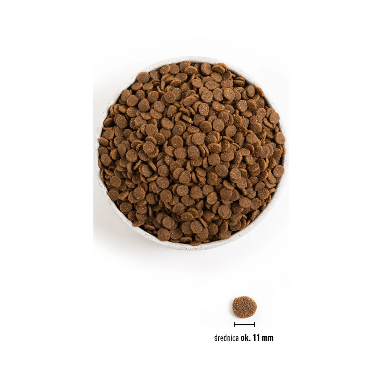 • Kõrge proteiini- ja mõõduka rasvasisalduse tõttu sobib aktiivsetele ja lihaste arengut vajavatele väikestele koertele.