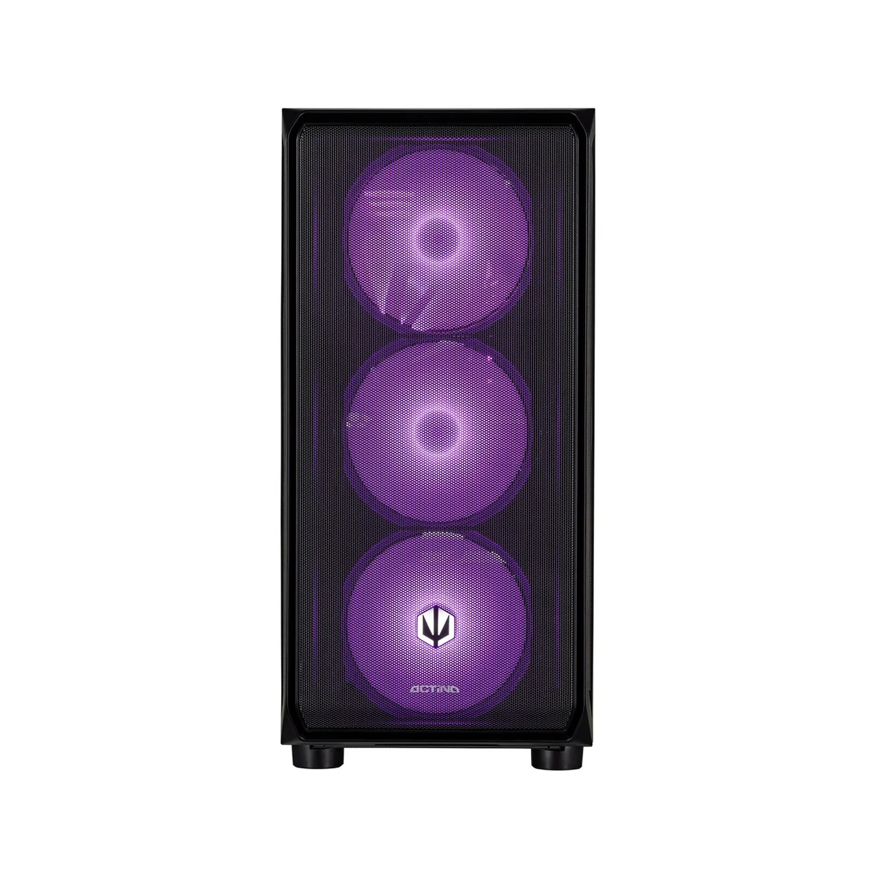 - RGB-taustvalgus korpuses ja ventilaatorites: Visuaalselt atraktiivne, läbipaistev karastatud klaasist külgaken