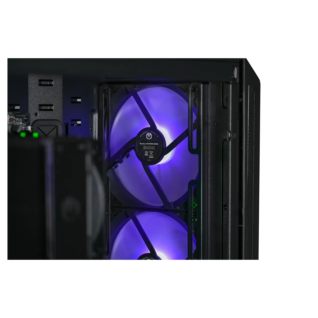 - Stiilne, mahukas ja tugev midi tower – karastatud klaasist aknapaneel, vastupidav metallist ja plastist korpus, ees 3 suurt RGB ventilaatorit. Tagatud optimaalne õhuvool.
