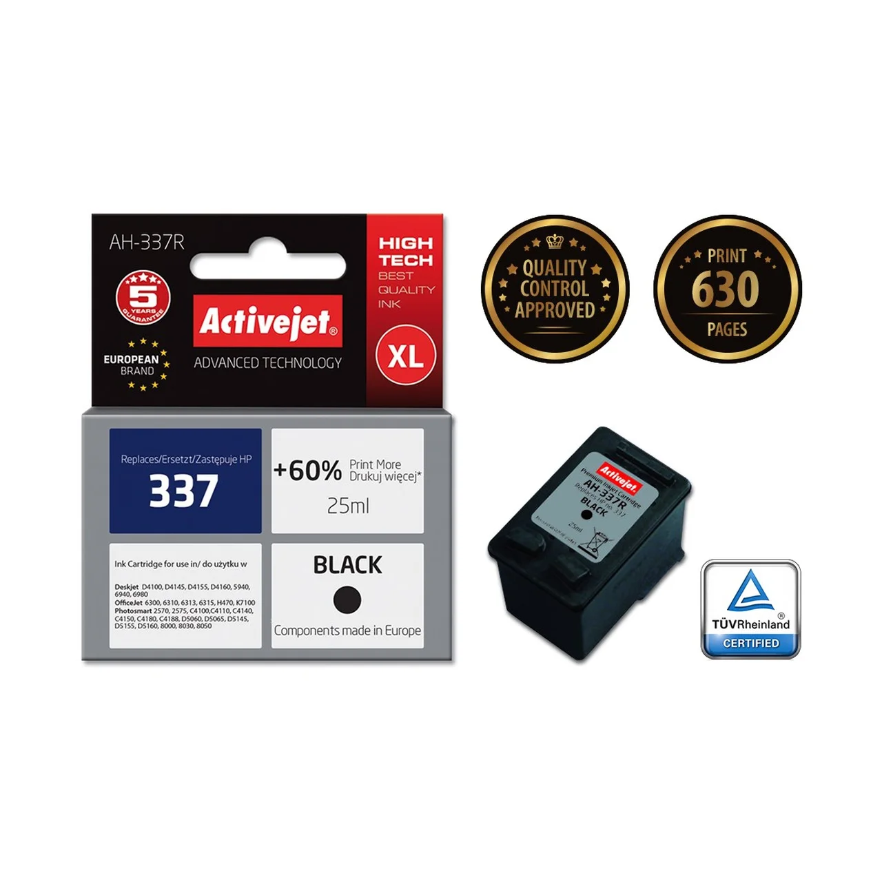 Activejet AH-337R on ühilduv musta pigmenttindiga XL kassett (25 ml), mis sobib HP 337 (C9364EE) printeritele ning tagab suure printimisvõimekuse.