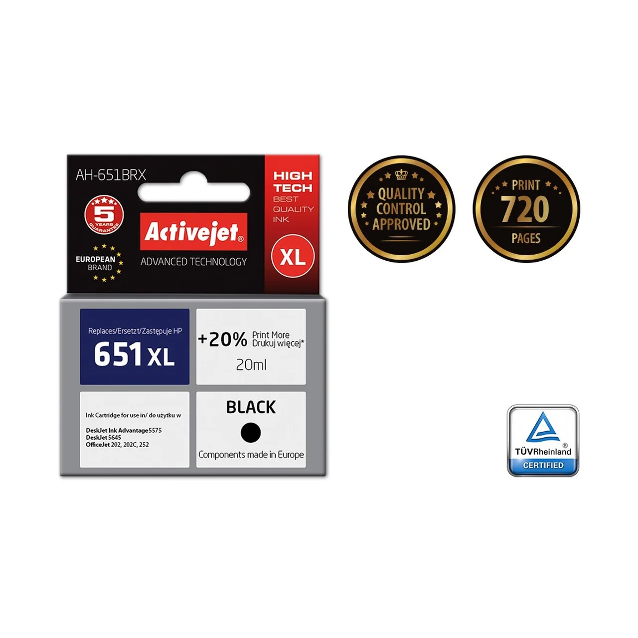 Activejet AH-651BRX 20 ml must pigmenttint HP 651 (C2P10AE) ühilduv tindikassett, 720 lehte, HP DeskJet/OfficeJet printeritele