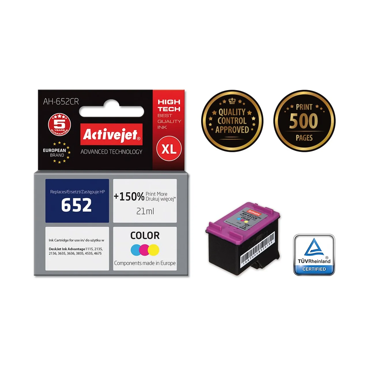 Activejet AH-652CR 21ml värvitindikassett (HP 652 F6V24AE asendus, XL-maht, tsüaan/magenta/kollane, ühilduv HP Deskjet Ink Advantage’iga)