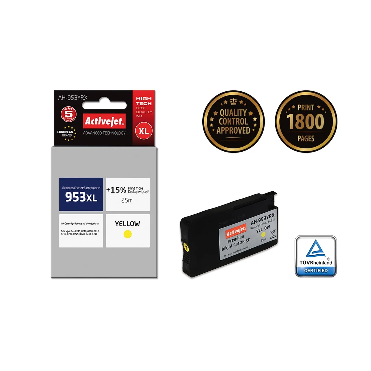 Activejet AH-953YRX on kollane XL-mahuga tindikassett (25 ml), mis asendab HP 953XL kassetti ja sobib HP Officejet Pro printeritele.