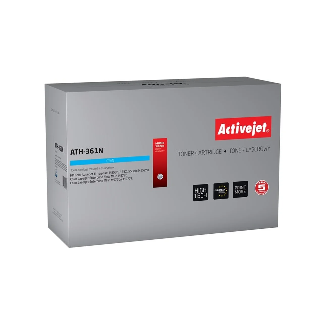 Activejet ATH-361N on tsüaan toonerkassett, mis sobib HP 508A CF361A asenduseks ning võimaldab kuni 5000 lehekülje kvaliteetset lasertrükki HP Color LaserJet Enterprise M552/M553 seeria printerites.