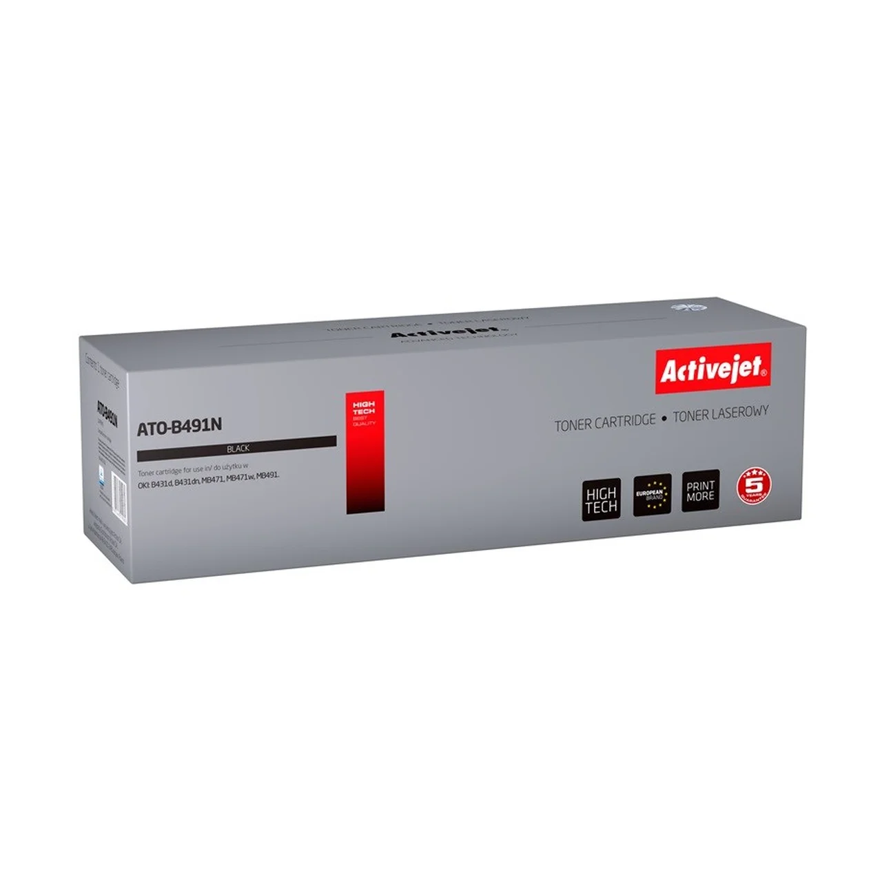 Activejet ATO-B491N on must lasertooner, mis sobib OKI B431 ja MB491 seeria printeritele ning võimaldab printida kuni 12 000 lehte.