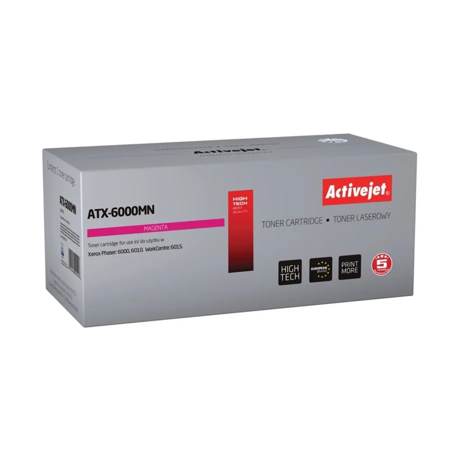Activejet ATX-6000MN magenta tooner on valmistatud vastupidavatest materjalidest ning tagab pikaajalise kasutuse. Tänu kõrgetele sertifitseerimisstandarditele ja usaldusväärsusele sobib see tooner nõudlikumale kasutajale, kes otsib head tasakaalu hinna, kvaliteedi ja keskkonnasäästlikkuse vahel. “Plug and Play” paigaldus võimaldab kiiret kasutuselevõttu – lisavarustust pole vaja.