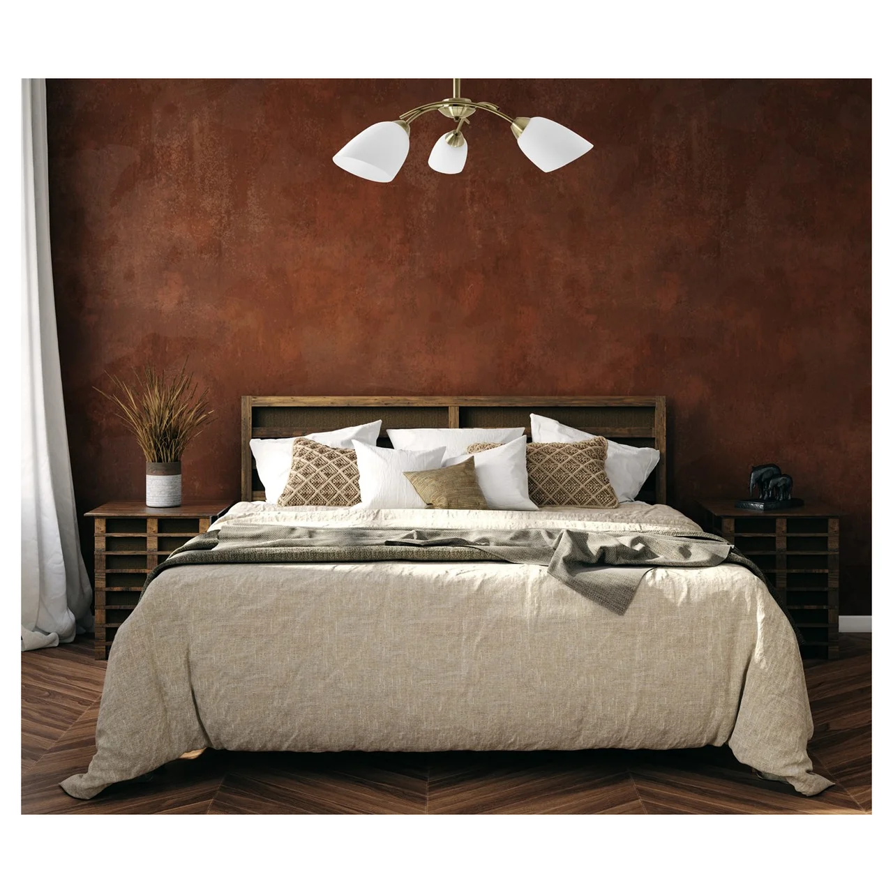 Elegantne patineeritud metallist ja valge klaasiga laelühter kolme E27 lambiga sobib hästi elutuppa või magamistuppa, pakkudes ühtlast valgustust.