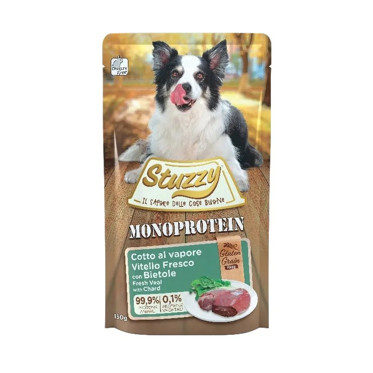 Stuzzy Monoprotein Veal with beetroot on kvaliteetne märg koeratoit, mis on mõeldud täiskasvanud koertele, kellel esineb toiduallergiaid või -talumatust. Tegemist on täissöödaga, mille ainsaks loomse valgu allikaks on veiseliha. Toode sobib kõikidele tõugudele ja suurustele ning on sobiv koertele, kelle menüüst tuleb välistada kana või soja. Tänu suhkru-, soja-, kunstlike värvainete- ja teraviljavabale koostisele aitab see toit vähendada toidutalumatuse riski ning toetab sinu lemmiku seedimist ja üldist heaolu.