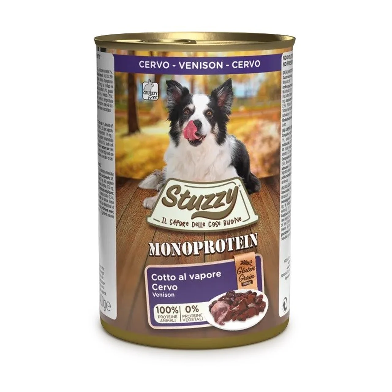 Stuzzy Monoprotein Venison on kvaliteetne märgtoit täiskasvanud koertele, sobib igat tõugu ja suurusega lemmikutele. See toit on loodud spetsiaalselt koertele, kellel esineb toiduallergiaid või tundlik seedimine. Toode sisaldab vaid üht loomse valgu allikat – hirveliha – ning on seejuures teravilja-, kana- ja gluteenivaba. Tänu monoproteiinsele retseptile ning säilitusaine- ja kunstlike värvainete puudumisele sobib see eriti hästi allergiaohtlikele ja tundliku seedimisega koertele, muutes igapäevase toitmise mugavaks ja ohutuks valikuks.