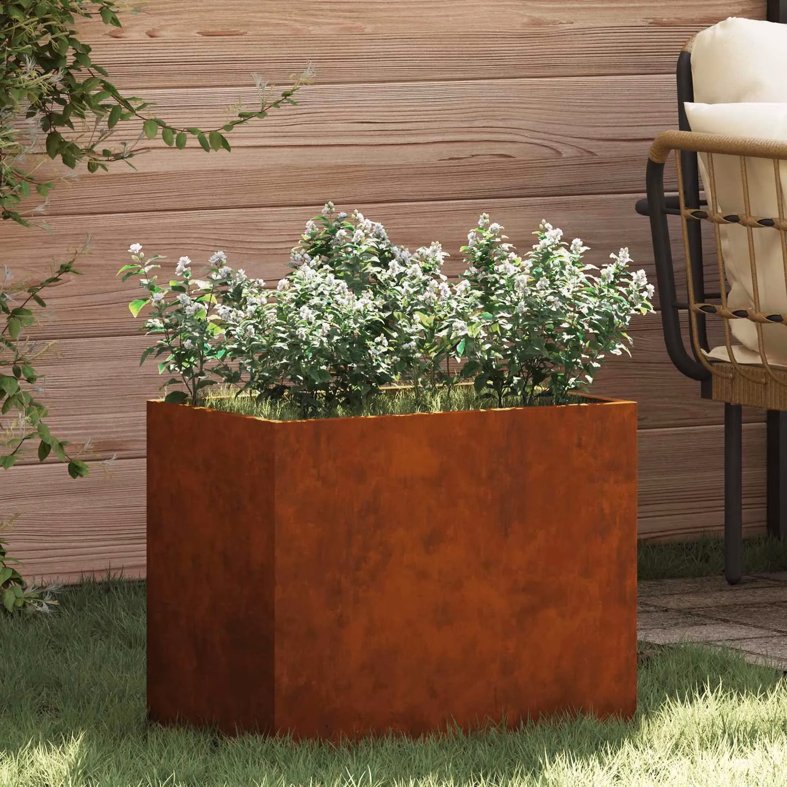 Istutuskast tarnitakse osadeks võetuna ning vajab kokkupanekut. Järgi komplektis olevat juhendit ja pinguta kinnitused ühtlaselt, et tagada stabiilne tulemus. Paiguta kast tasasele pinnale ning kasuta sobivat drenaaži ja mullasegu vastavalt valitud taimede vajadustele. Kuna toode on mõeldud ainult välitingimustes kasutamiseks, paiguta see õuealale, kus roostetav pind ei puutu kokku õrnade pindade või tekstiilidega.