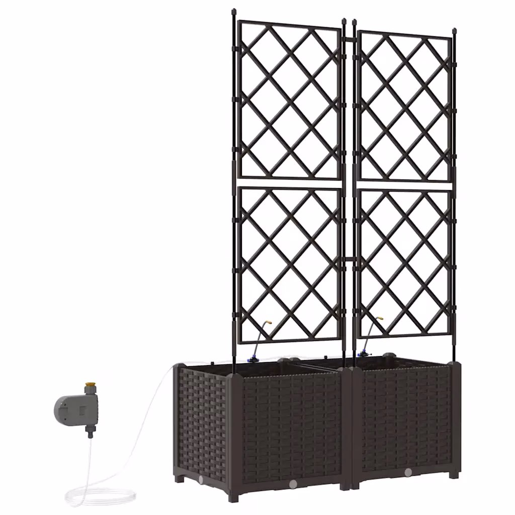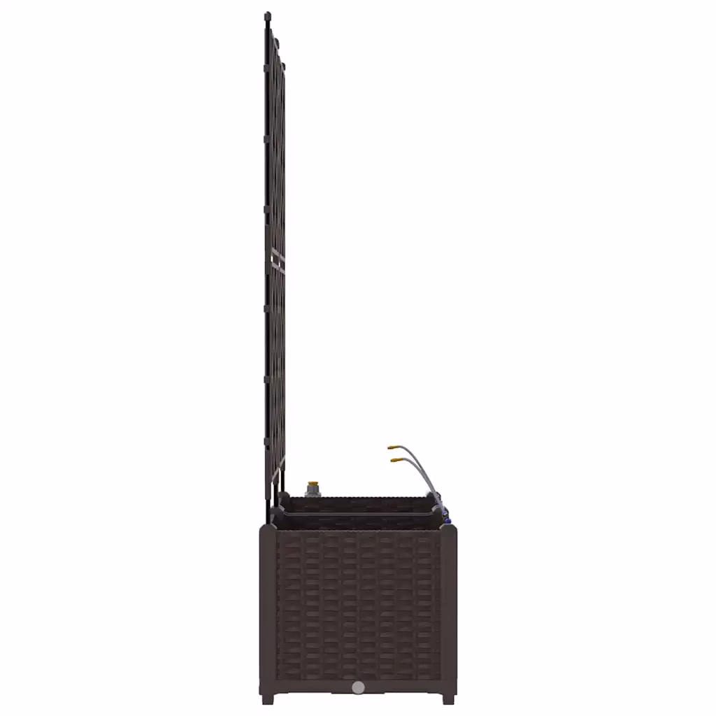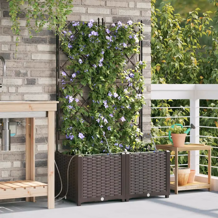 Kaheosaline pruunist terasest istutuskast trellisega on mõeldud ronitaimede ja muude dekoratiivtaimede kasvatamiseks aias, terrassil või rõdul. Integreeritud kastmissüsteem aitab hoida mulla ühtlaselt niiskena, luues taimedele sobivad kasvutingimused ka siis, kui oled mõnda aega kodust eemal. Tänu kaasaegsele disainile sobitub istutuskast erinevate väliruumide sisekujundusega.
