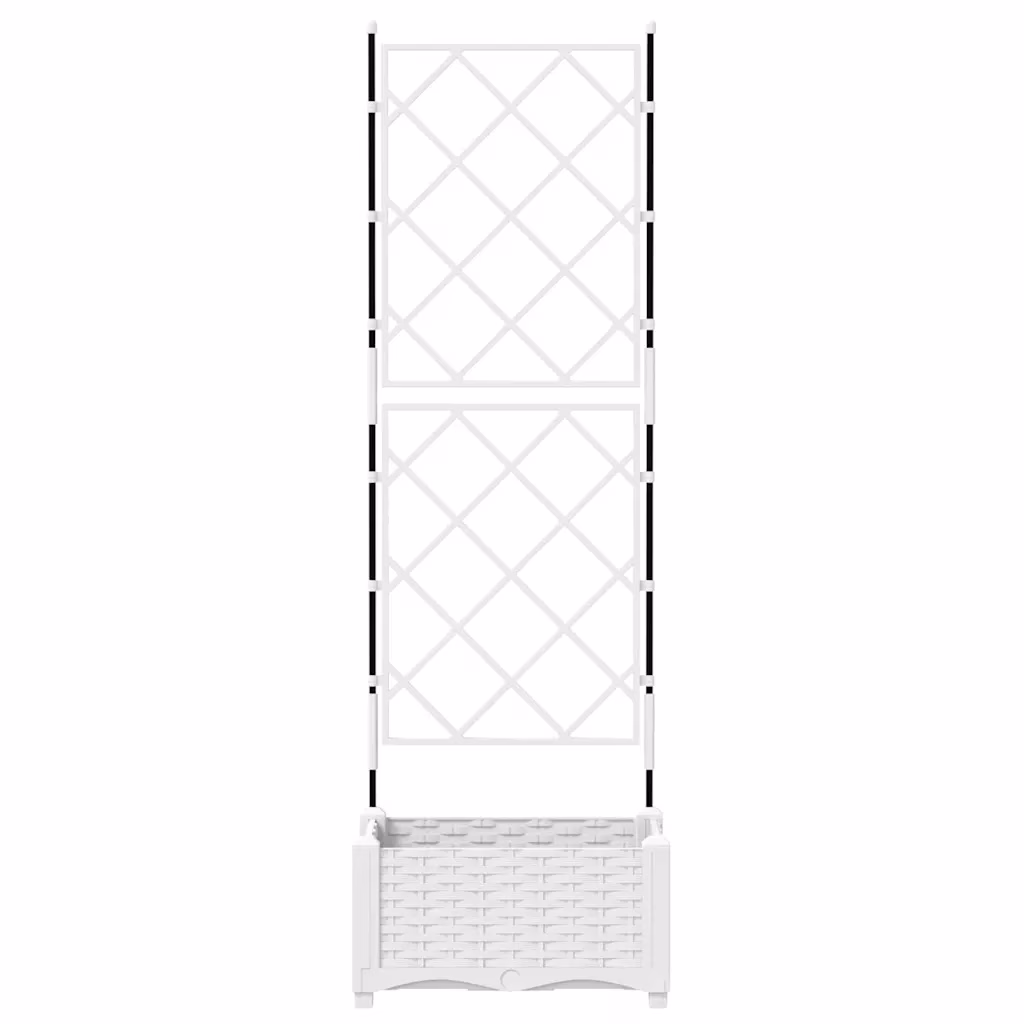 Valge trellisega aiapott aitab luua piiratud ruumis efektse vertikaalse istutuse. Terasest konstruktsioon on vastupidav välitingimustes ja toetab ronitaimi kindlalt. Kompaktne suurus 40 x 40 x 125,5 cm sobib aiateele, terrassile või sisehoovi.