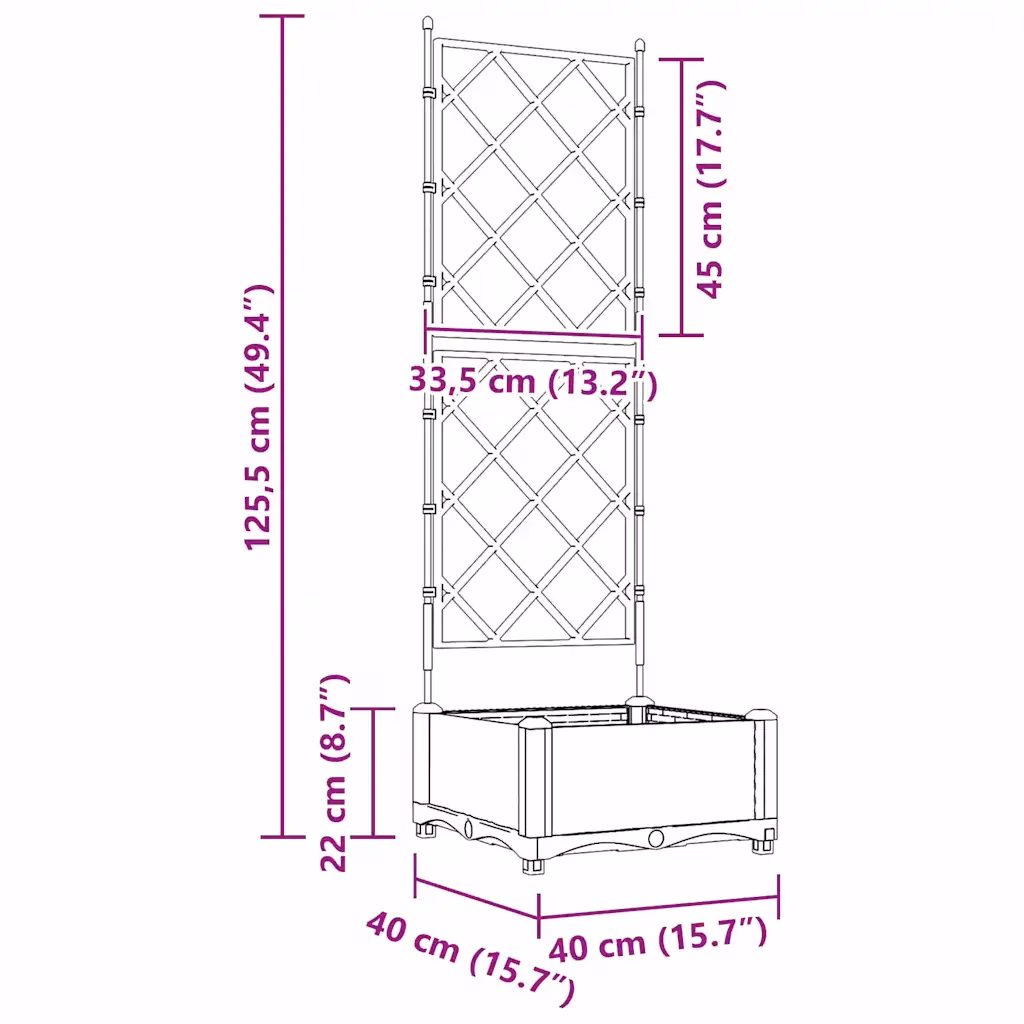 • 1 x trellisega aiapott mõõtmetega 40 x 40 x 125,5 cm