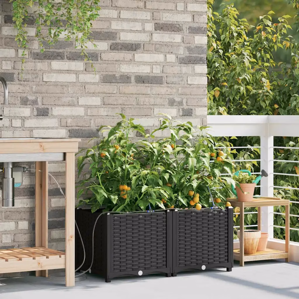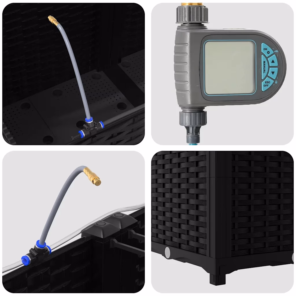 Kui otsid lahendust, mis ühendab vastupidavuse ja läbimõeldud kastmise, on see komplekt praktiline valik igasse aeda või terrassile. Kaasaegne must disain sobib erinevate väliruumide stiiliga ning kastmissüsteemiga konstruktsioon aitab hoida taimed elujõulised ka siis, kui kastmisvahed venivad pikemaks.