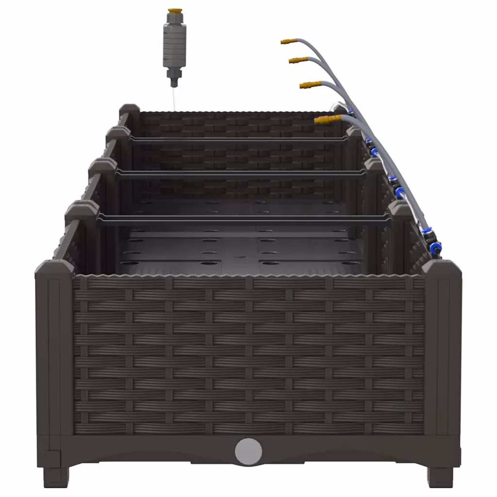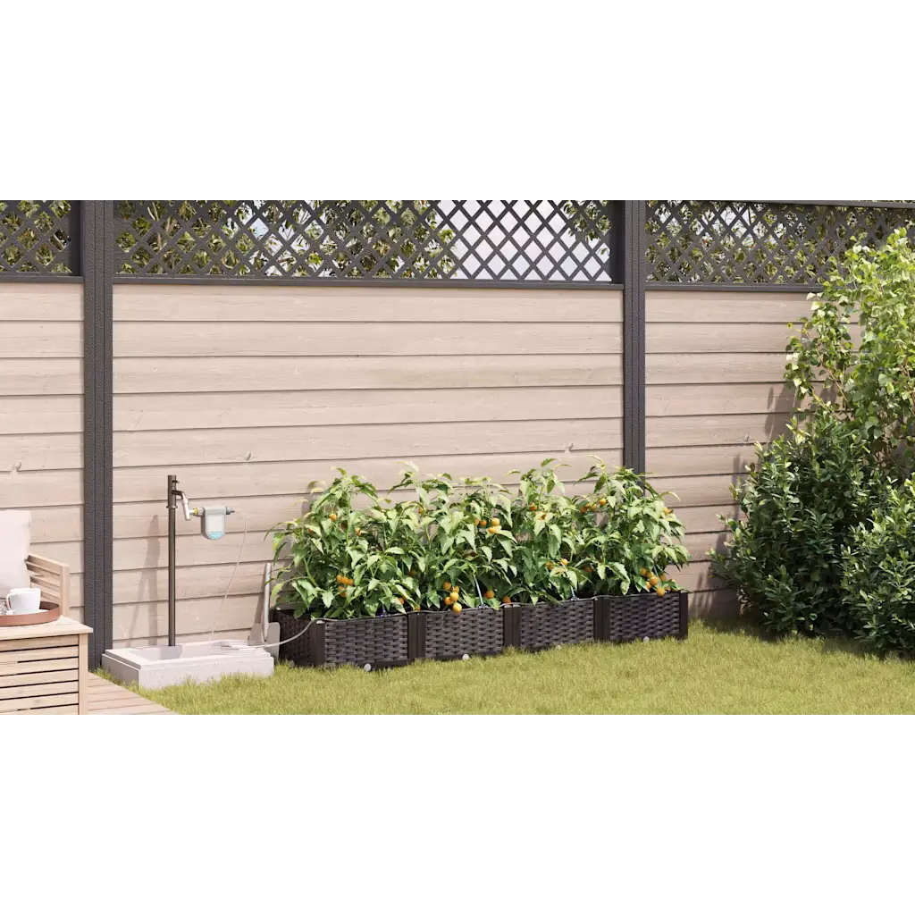Neljaosaline kastmissüsteemiga istutuskastide komplekt aitab luua korrastatud peenra terrassile või aeda, ilma et peaksid taimi iga päev käsitsi kastma. Pruunist terasest konstruktsioon on vastupidav ja sobib kasutamiseks välitingimustes, pakkudes stabiilset kasvukohta nii köögiviljadele, maitsetaimedele kui ka ilutaimedele. Komplekti kogumõõtmed 160 x 40 x 22 cm võimaldavad kasvatada rohkelt taimi kompaktsel pinnal.