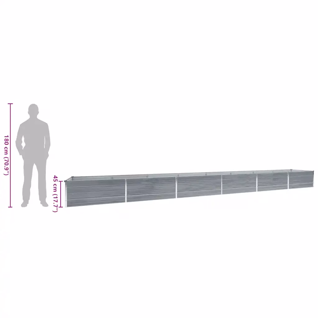 Kui soovite oma aias luua selgepiirilise ja hooldatava kasvuala, on see hall tsingitud terasest kõrgendatud taimelava funktsionaalne lahendus. Suur kasvupind, vastupidav konstruktsioon ja lihtne hooldus teevad sellest sobiva valiku nii dekoratiivsete kui ka söödavate taimede kasvatamiseks aias.