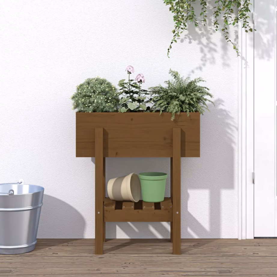Meekarva männipuidust taimekast sobib hästi, kui soovid lisada rohelust piiratud ruumiga õuealale. Kompaktne mõõt 62 x 30 x 69 cm võimaldab mahutada rohkelt taimi ilma liigselt ruumi võtmata ning alumine riiul hoiab aiatarvikud korrastatult, et istutamine ja hooldus oleksid alati mugavad.