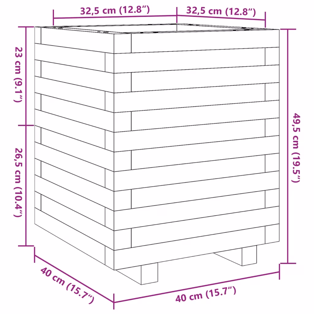- Kompaktsed välismõõdud – mõõdud 40 x 40 x 49,5 cm (pikkus x laius x kõrgus) võimaldavad taimekasti paigutada ka väiksemale terrassile või rõdule.