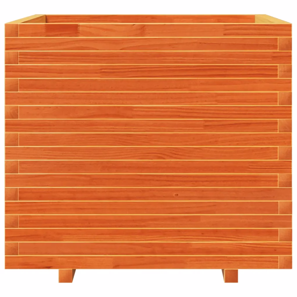 See männipuidust aia taimekast võimaldab luua kompaktse peenra aias, rõdul või verandal. Vahapruun viimistlus ja selged puidusüü mustrid annavad ruumile loodusliku ilme, samas kui ruudukujuline vorm mahutab rohkelt erinevaid taimi.