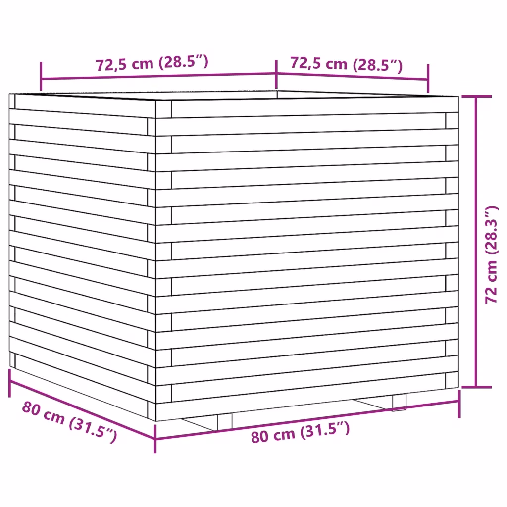 • Sisemõõdud 72,5 x 72,5 x 72,5 cm tagavad piisava sügavuse taimede juurestiku arenguks.