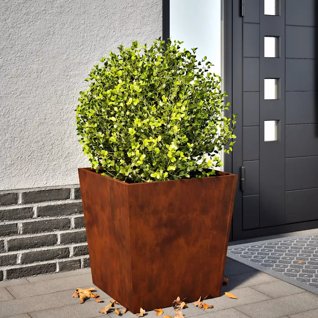 Vali see ilmastikukindlast terasest taimekast, kui otsid vastupidavat ja vähest hooldust vajavat istutuslahendust, mis sobib hästi eri tüüpi õuealade kujundamiseks. Ruumikas ja põhjaga konstruktsioon teeb sellest hea valiku nii üksikute aktsenttaimede kui ka väiksemate peenarde loomiseks, lisades sinu aeda, rõdule või terrassile iseloomuliku pruuni metallitooni.