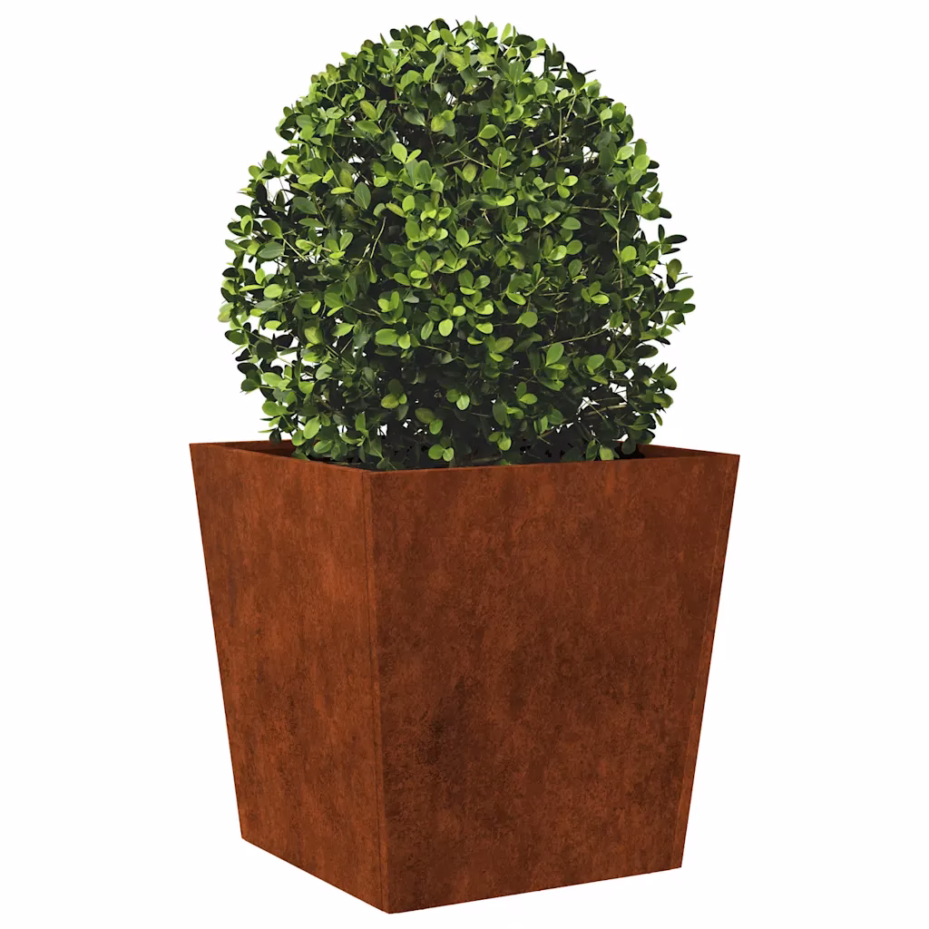 • 1 pruunist ilmastikukindlast terasest aia taimekast põhjaga, mõõtmed 50 x 50 x 50 cm
