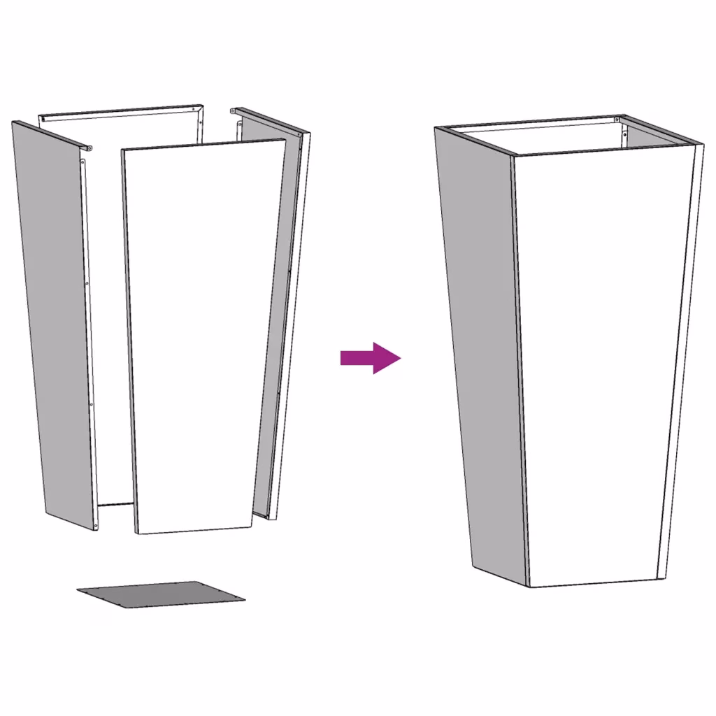 Kuna taimekast vajab kokkupanekut, tarnitakse see detailidena. Pärast kokkupanekut paigutage kast soovitud kohta aias, rõdul või terrassil ning täitke see sobiva mullaseguga. Vajaduse korral saate põhja teha äravooluava, et kohandada kast konkreetsete taimede ja kasvutingimuste järgi.
