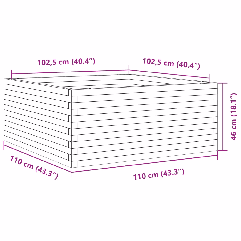 - Rohkelt istutusruumi – kogumõõtmed 110 x 110 x 46 cm võimaldavad mahutada palju mulda ja erinevaid taimi.