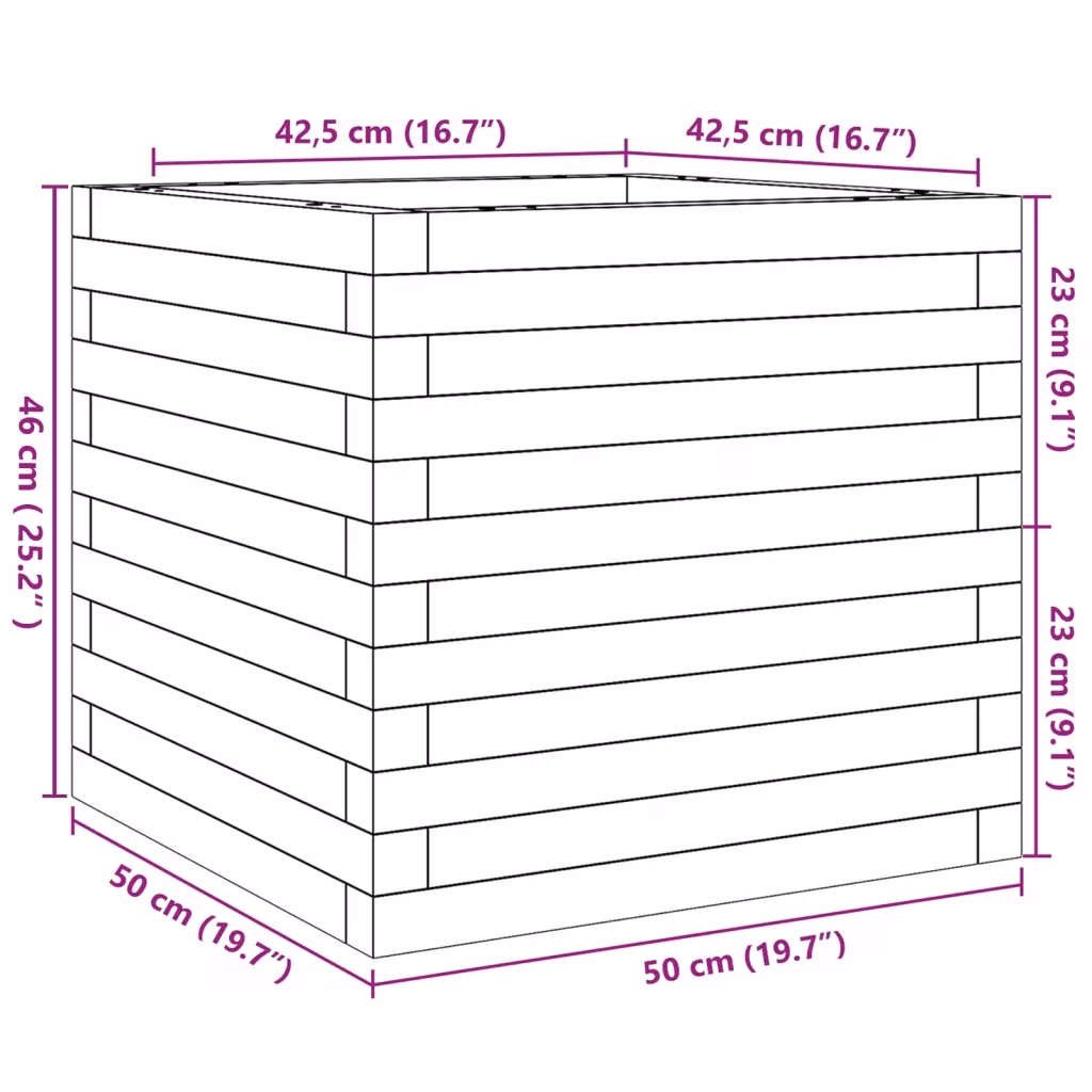 • Kompaktne suurus 50 x 50 x 46 cm teeb taimekastist hea valiku nii väiksemale terrassile kui ka suuremale aiale.