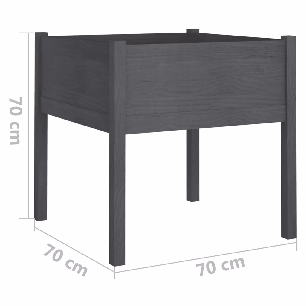 - 2 x aia taimekasti mõõtmetega 70 x 70 x 70 cm (pikkus x laius x kõrgus), halli värvusega männipuidust.