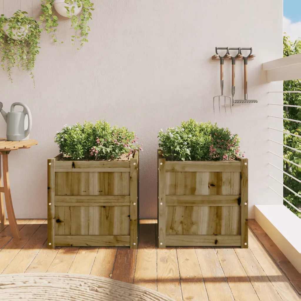 • 2 x taimekast survetöötlusega immutatud männipuidust, mõõtmetega 50 x 50 x 50 cm (L x S x K)
